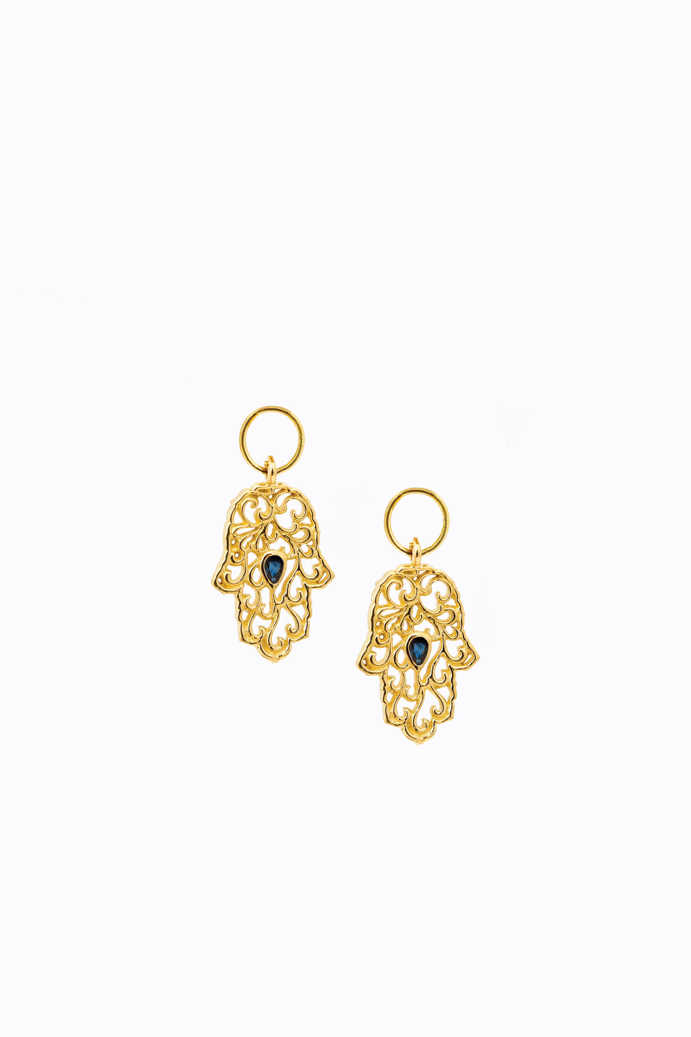18K royal yellow Interchangeable hand of fatima drops with blue sapphire.
