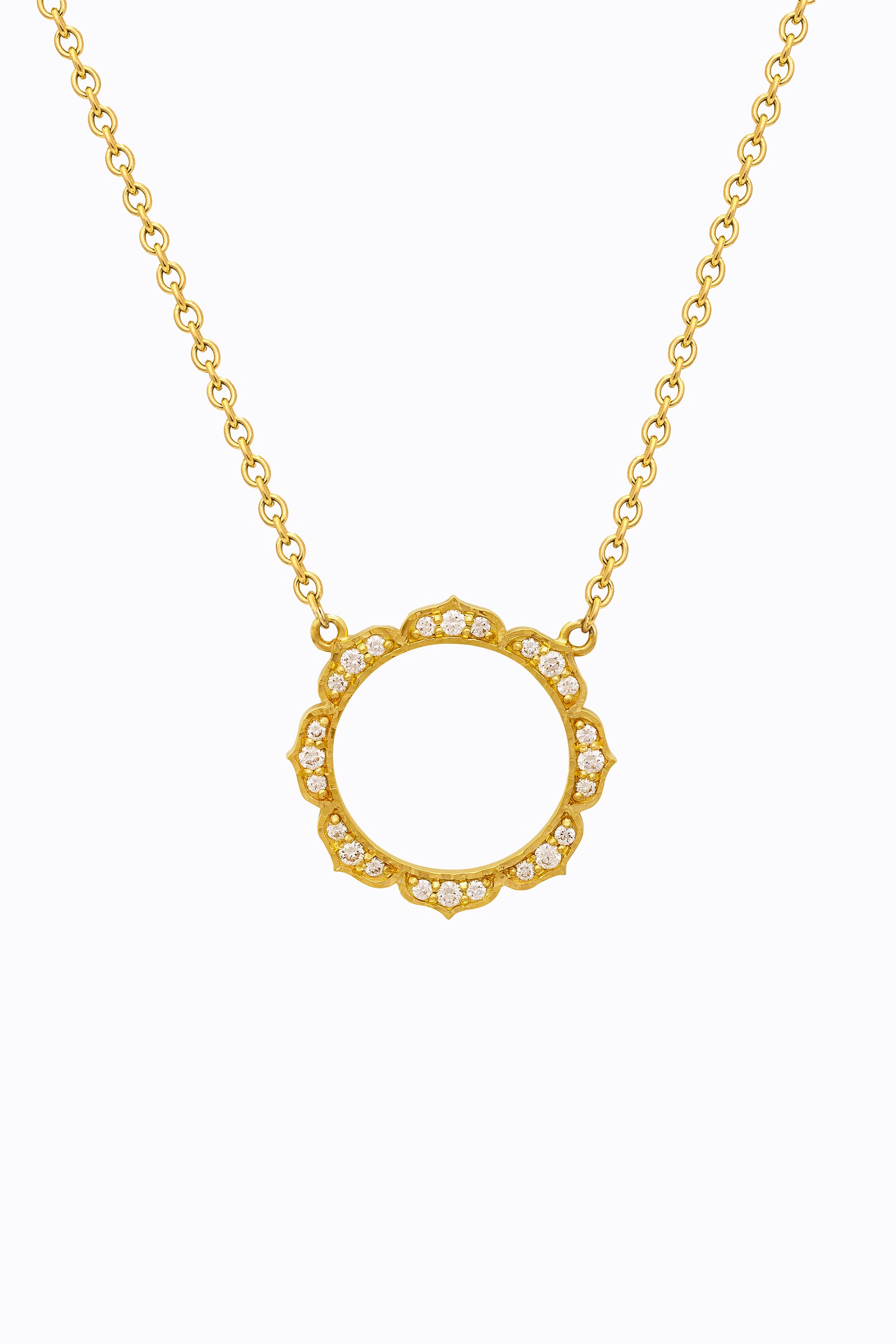 18k Royal yellow gold pendant with eight (2.1mm) and sixteen (1.7mm) diamond accent stones. Total Carat weight (.63pts) on an 18” gold chain.